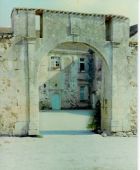 On entre dans la cour en passant sous un grand porche surmonté du double blason des GENTET et des du TEMPS (vers 1670).